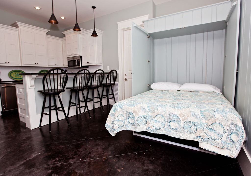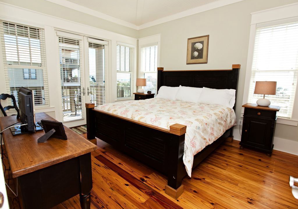 First floor- rec room with game table, twin/full/trundle bunk beds + separate room with full kitchen, queen murphy bed, large screen tv, queen sleep sofa, exit to private pool area with outside shower, gas grill, and direct beach access out back gate.