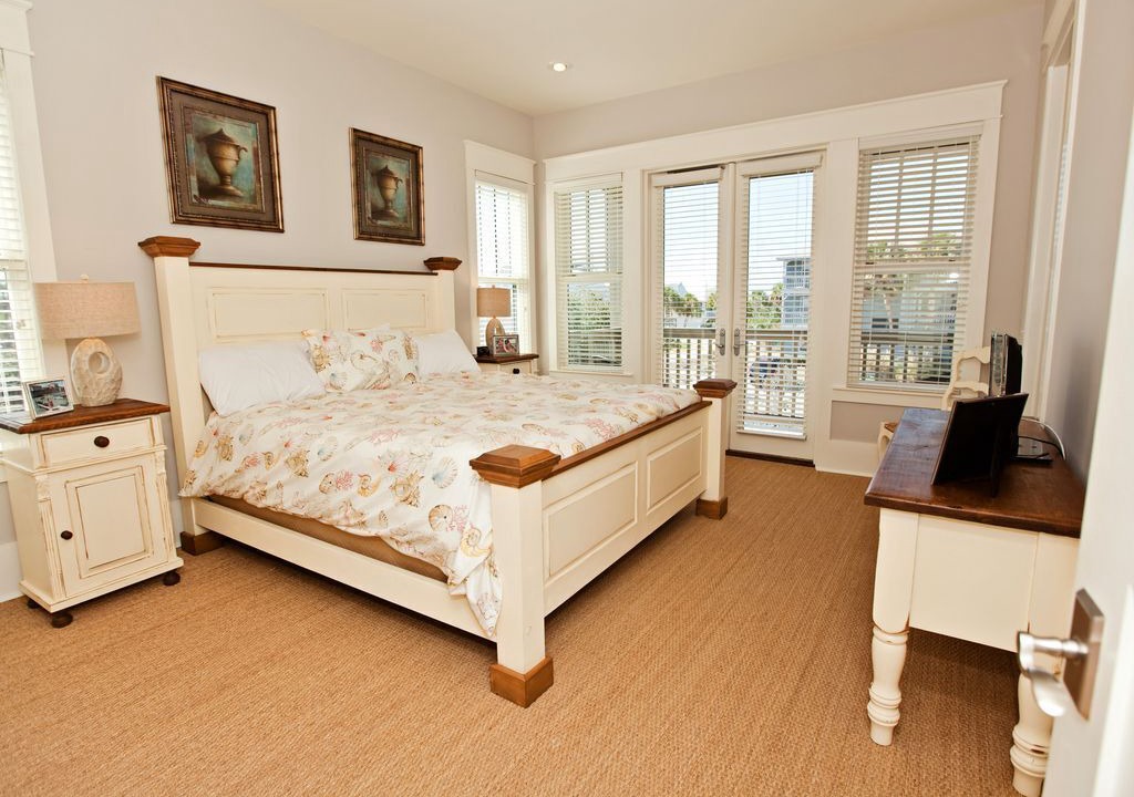 The upper level offers a small private office area (although it is hard to get work done because of the great view), a half bathroom, and a large king suite (sleeps 2) with its own gulf view balcony and a private full bathroom.