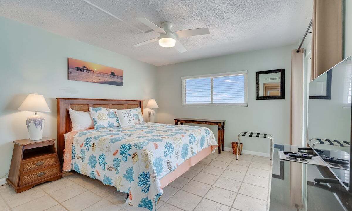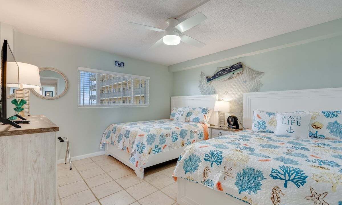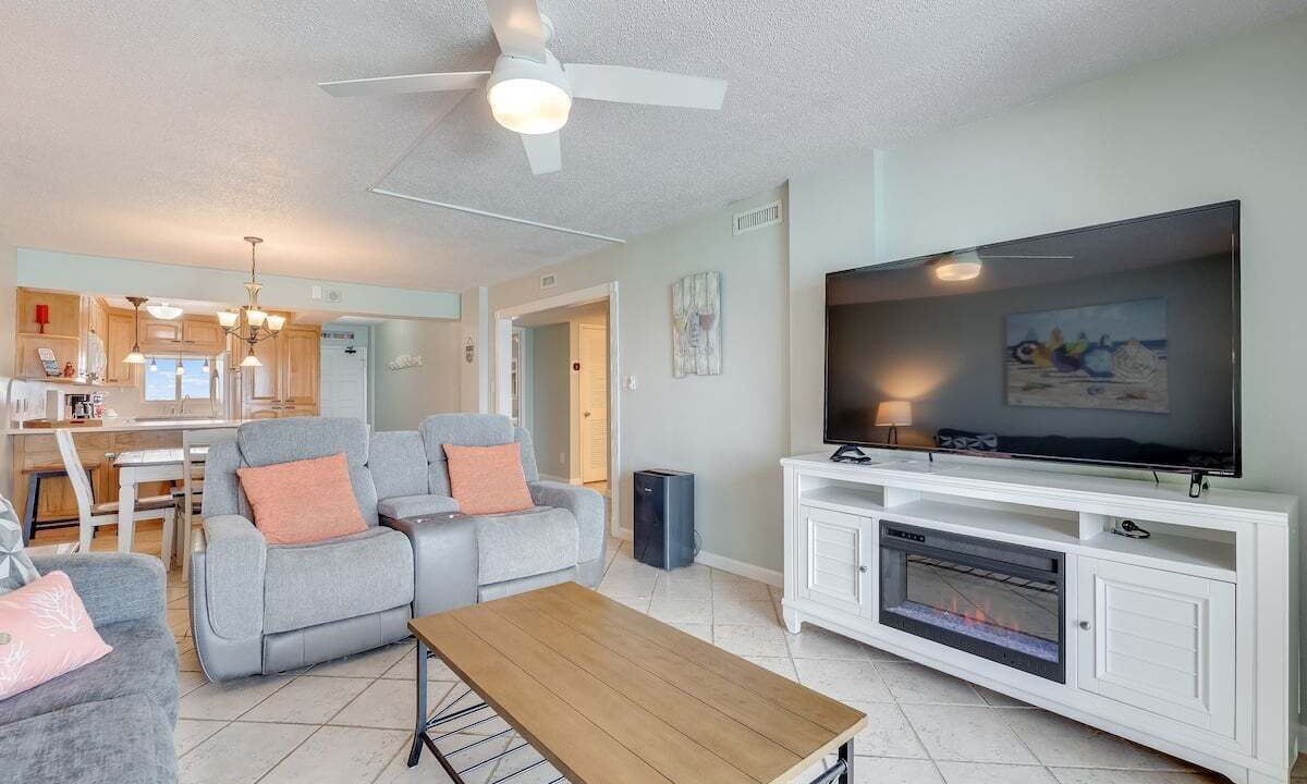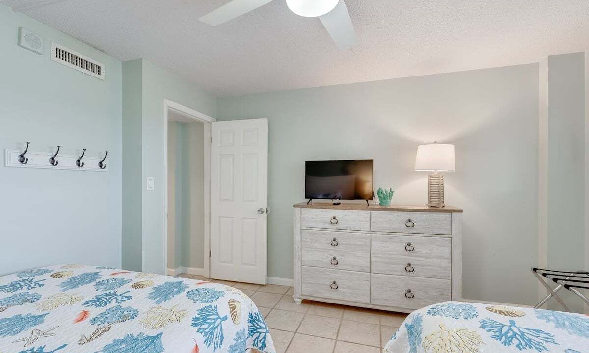 This 11th floor unit located at Regency Towers offers excellent comforts to make the most of your beach vacation. The master bedroom hosts a king bed, private bathroom, and direct access to the beachfront balcony. The second bedroom hosts two full beds and is adjacent to the unit's second bathroom. The common room also hosts a sleeper sofa for two people.