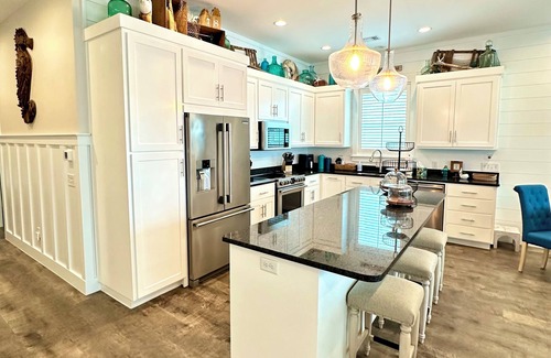 Salty Air Retreat~Vacation home w/heated pool~Sleeps 12~Steps to beach access! is located in Silver Sands Beach. Salty Air Retreat~Vacation home w/heated pool~Sleeps 12~Steps to beach access! provides accommodation, featuring Barbecue/Outdoor Cooking, Kitchen, Parking, among other amenities. This House features Barbecue/Outdoor Cooking, Kitchen, Parking, to make your stay a comfortable one.
