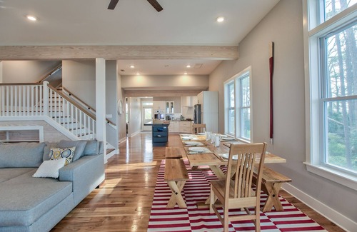 We try to provide all that you would need for your stay at our home including paper products (paper towels, toilet paper), dish soap, laundry pods, spices, flour, sugar (white and brown), coffee (ground and some k-cups), tea, shampoo, conditioner and body wash, sunscreens, bug repellent (spray and Thermacell Patio Shield Mosquito Repeller). There is a basket of beach towels (25) by the door for your use as well. There are 15 beach chairs, 3 umbrellas, 3 kayaks, 2 paddle boards, 9 personal floatation jackets (tow be worn while using kayaks and paddle boards), 2 tubs of beach toys and games, horseshoes, badminton, and fishing rods and gear.
