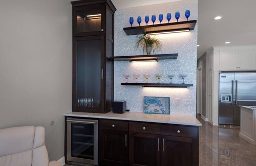 Inside, guests will love the soaring ceilings, polished finishes, and open-concept layout that flows effortlessly from the chefβs kitchen into the spacious living and dining areas. The living room features a state-of-the-art Dimplex Prism electric fireplace that sets the mood for the evening with 1 touch of ease and 12 color spectrums to choose from. The kitchen features Viking stainless appliances, a prep island, warming drawer, beverage center, ice machine, and natural gas cooktop. The spa-style master suite is a true sanctuary with a steam room, soaking tub, heated floors, walk-in cedar closet, and a Beautyrest Black mattress. When you're ready to entertain or wind down, the Sonos sound system plays throughout the entire home and even the beachfront decks. The large garage fits up to six vehicles, and laundry mudroom seating ensures a seamless transition from beach to shower.