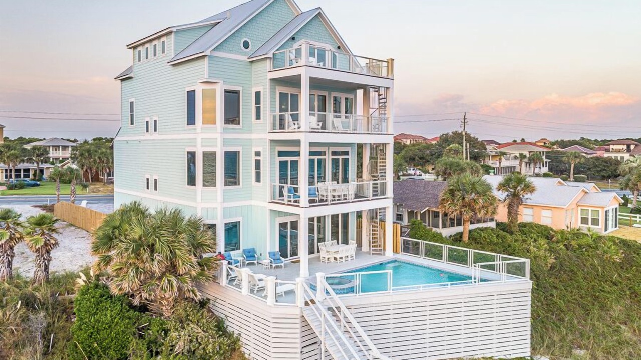 "Seahorse" by Holiday Beach Rentals is a 9 bedroom, 9 full bathroom (and 2 half bathroom!), 5195 square feet luxury beachfront home. It is also equipped with an elevator that extends to the first three floors. Seahorse by Holiday Beach Rentals is a 9 bedroom, 9 full bathroom (and 2 half bathrooms!), 5195 square feet luxury beachfront home. It is also equipped with an elevator that extends to the first three floors. Seahorse also features a fourth floor pool table, plus a large swimming pool and bar area on the first floor. This home will be the perfect spot for you to spend your next vacation!