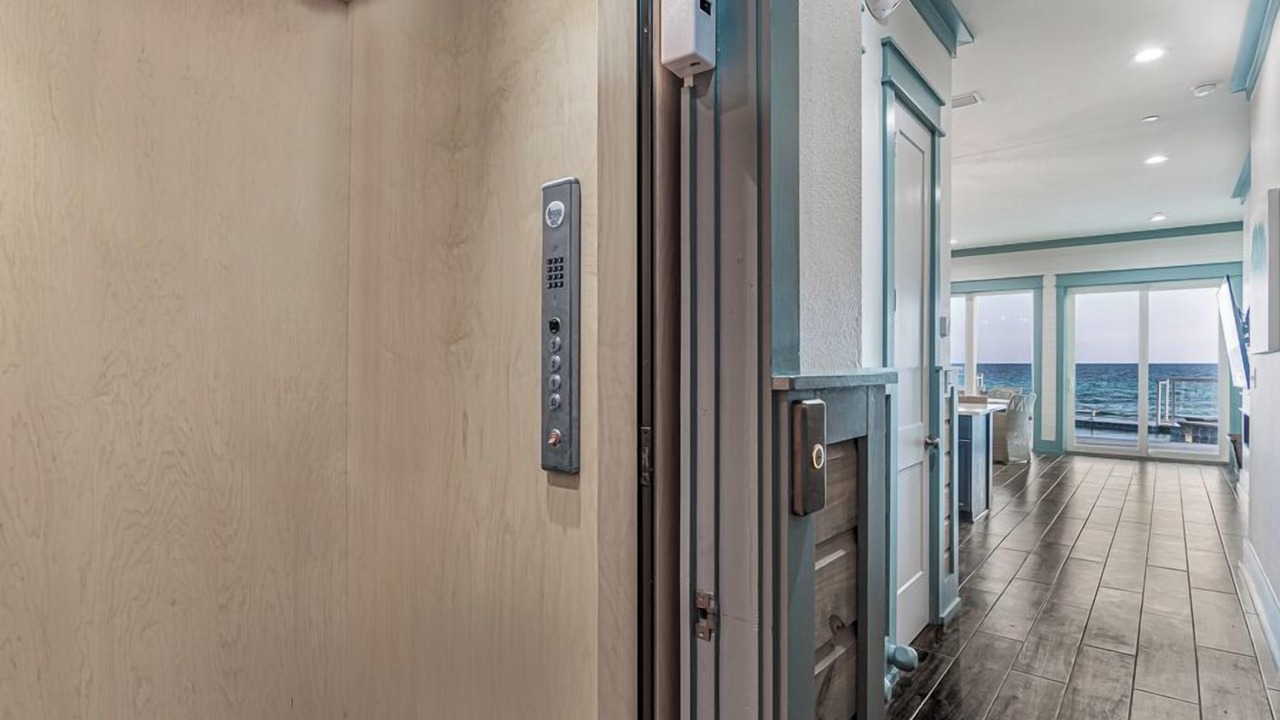 You can either choose to take the elevator* or a quick walk up to the North side of the third floor to find an additional double twin bunk room and king room (street view), both with their own private en-suite. On the opposite side is the beachfront king master suite featuring a separate sitting area and bar area with a wine cooler. This room has a large master bath with a large walk-in shower and separate garden tub, all with pristine gulf views. There is also an additional washer/dryer on this floor.