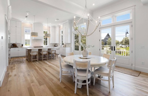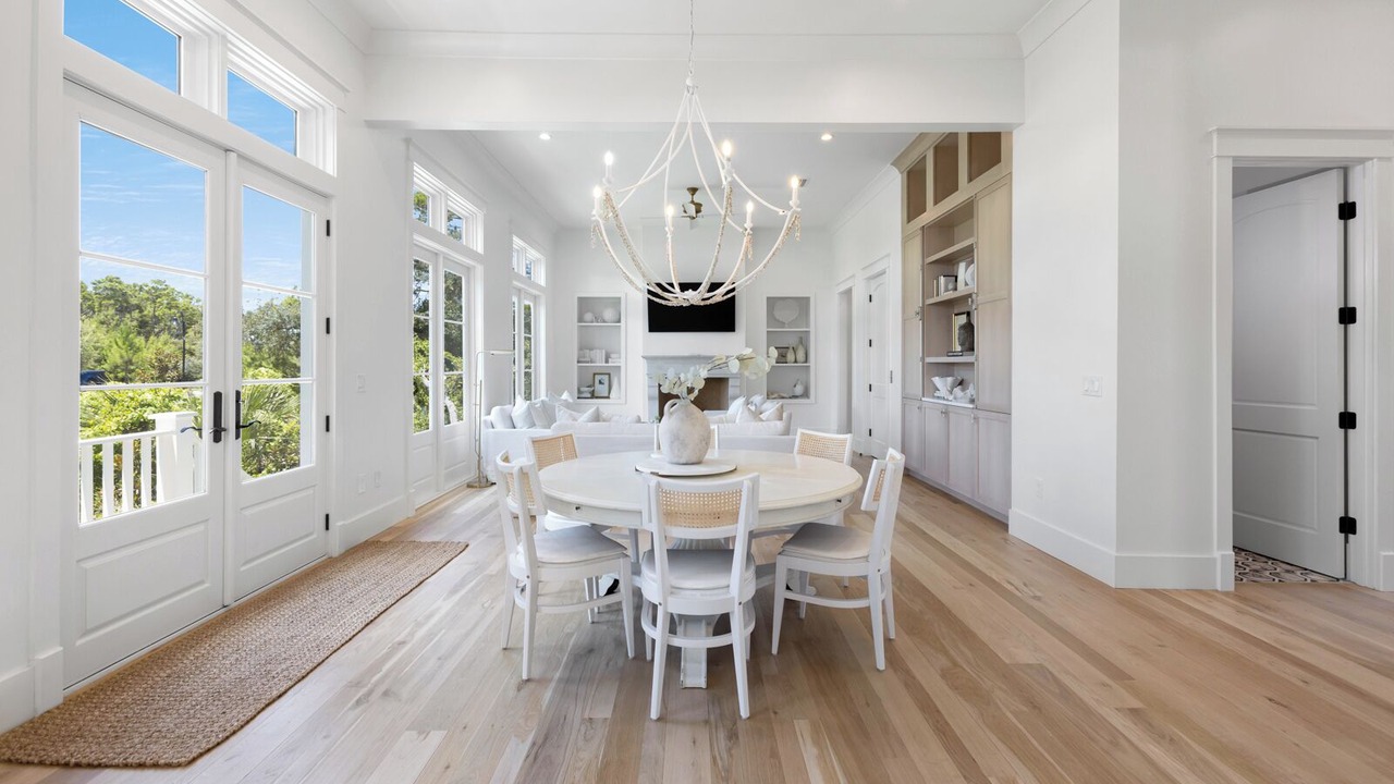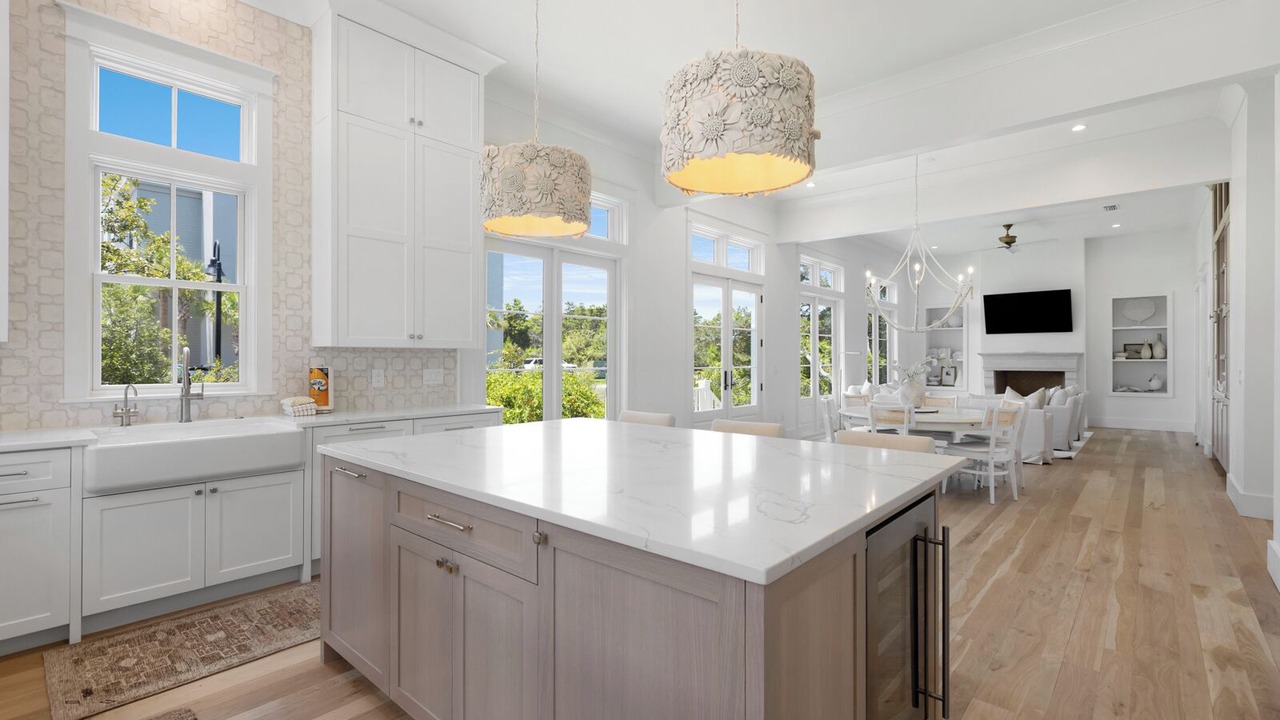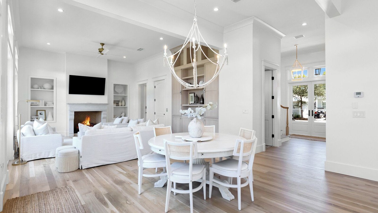 Welcome to Après 30A — a fresh modern farmhouse made for kicking back in style. Step inside and let the light pour in! From the garage, a cozy sitting nook sets the tone, leading to an open living, dining, and kitchen space with oversized windows framing the day. Around the corner, there’s a formal dining room for “let’s make this special” meals, plus a chic powder room.