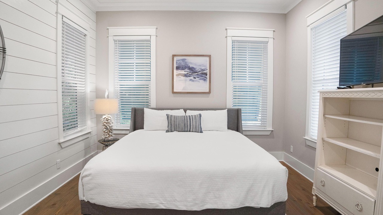 The luxurious feel continues into each bedroom and bathroom. Every bedroom is finished with a Smart TV and every bathroom is complete with marble countertops. No matter if you are rinsing off the sand and surf or getting ready for a night out on the town, the bathrooms provide plenty of space for each guest. You will find stunning characteristics in every bedroom that ensure you wake up to the excitement of staying along the beach.