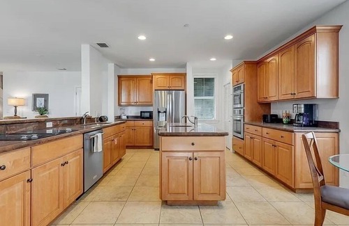The first level of the home offers a king bedroom with a double entry shower bathroom. On the second level are two king suites with en suite bathrooms (one with a shower/bath combo and the other with a deep jetted tub and separate walk in shower). Each suite has its own balcony and walk-in closets. The top floor offers a private bedroom with two twin beds. There is also an open loft with four twin beds and a central bathroom with a shower/tub combination. All twin beds can be converted to a king bed upon request. A sleeper sofa resides in the Great Room for additional sleeping arrangements.