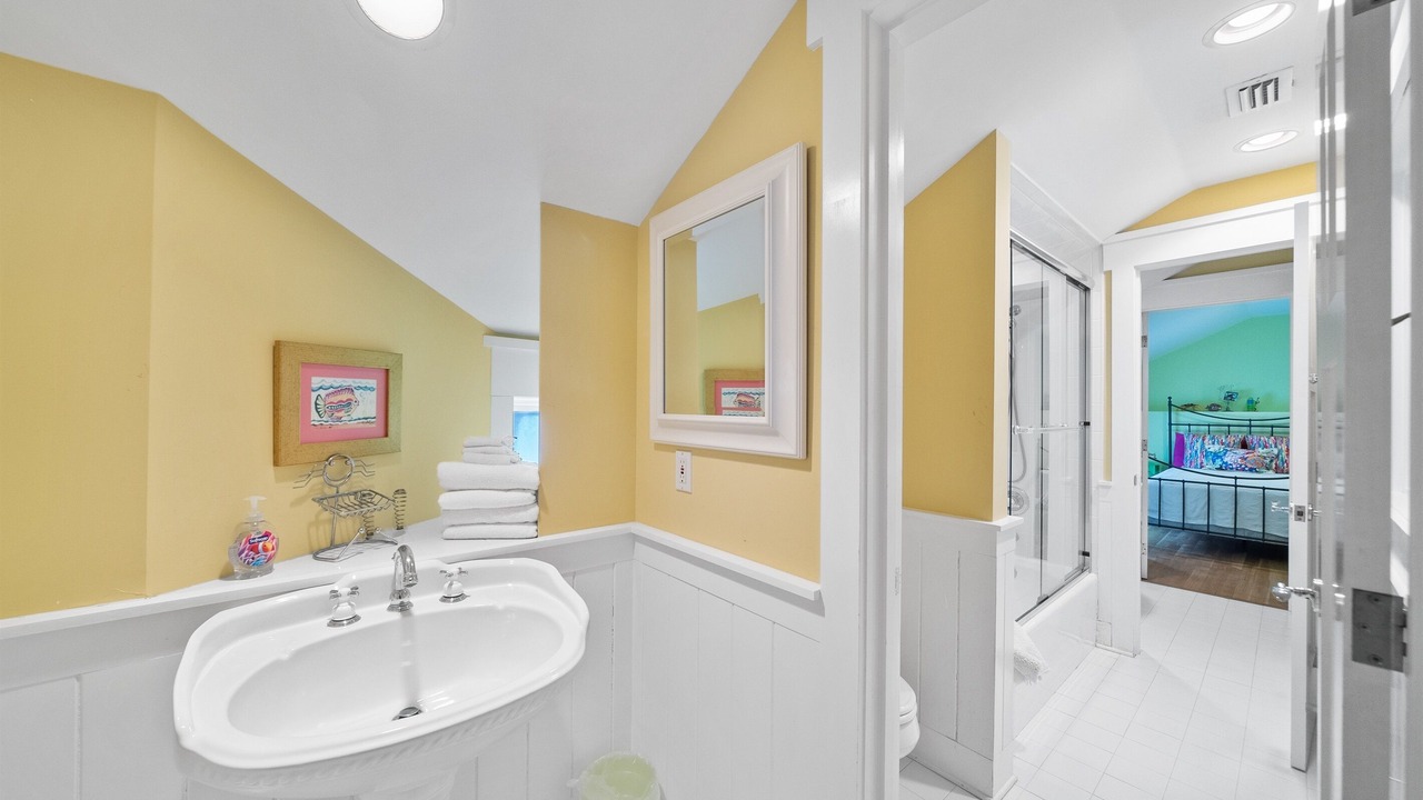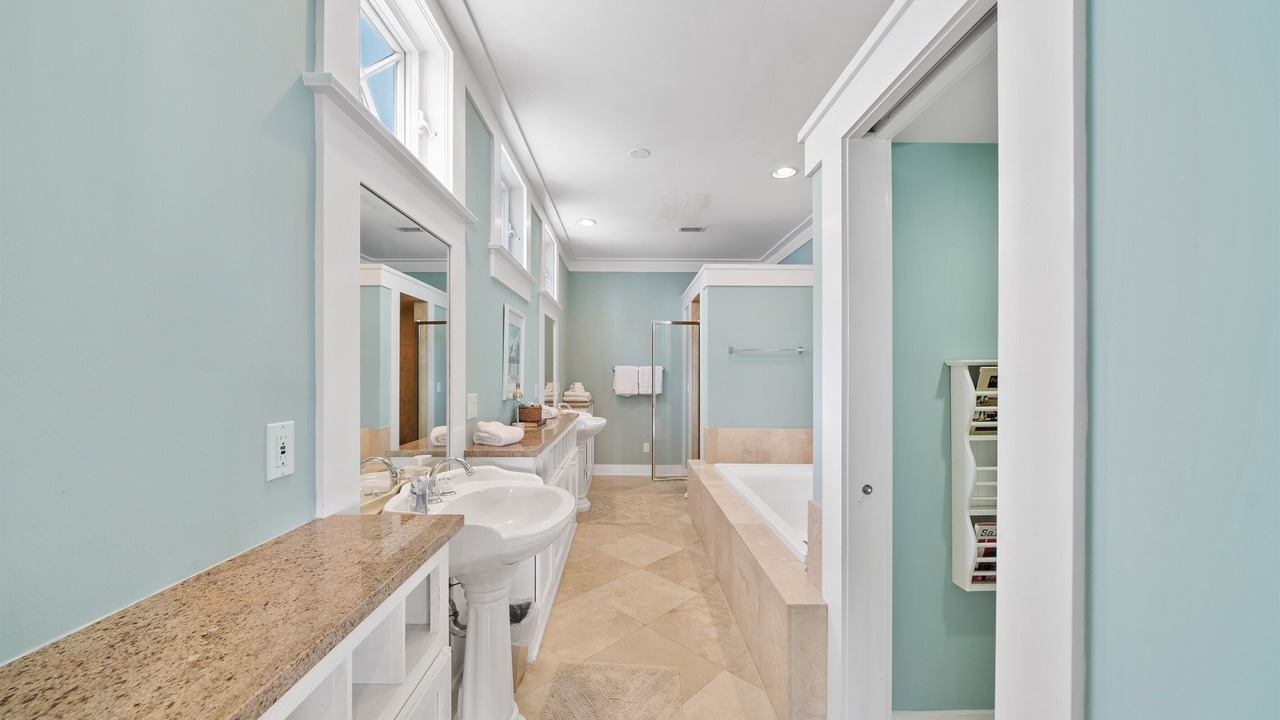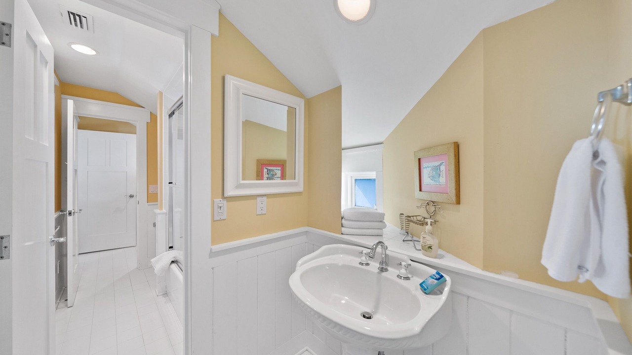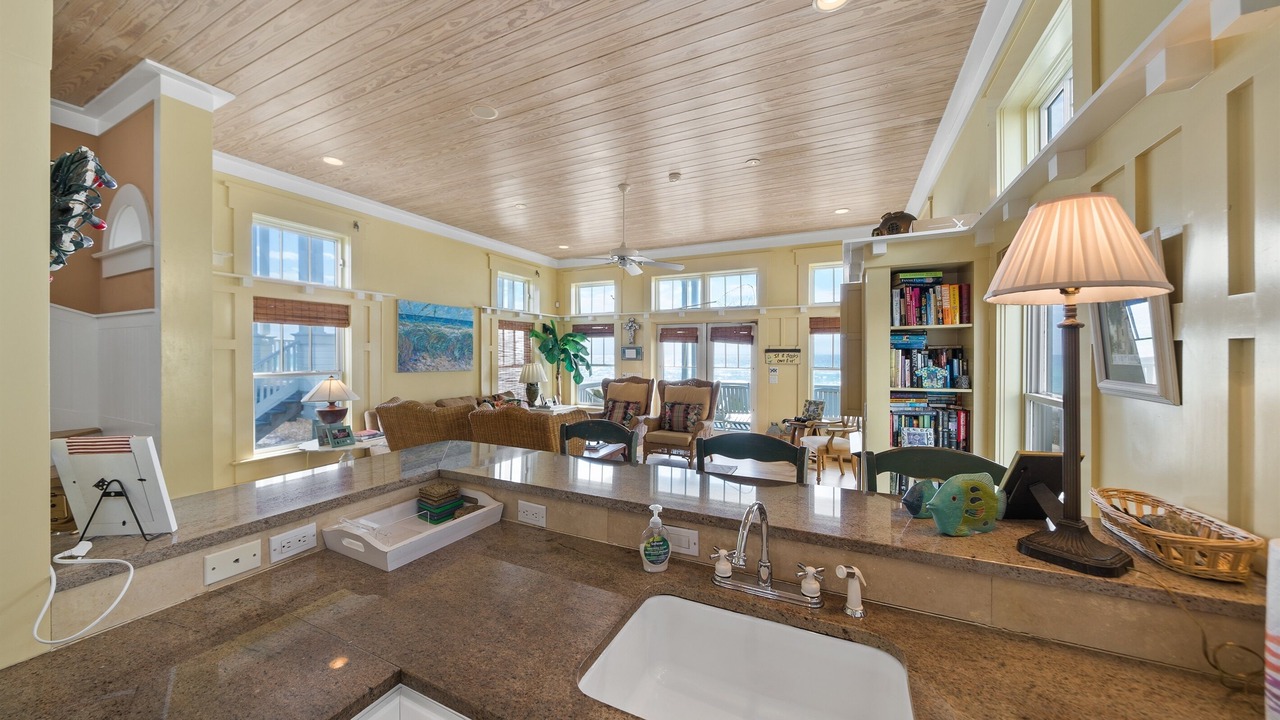 Shangri-La is a custom-built architectural masterpiece, a three-story, sky-blue 'sandcastle', thoughtfully designed to blend beauty, comfort, and functionality. Behind it, nestled within a charming white picket-fenced courtyard, is our two-story carriage house, La-Ti-Da, creating a private oasis perfect for families, friends, and even your four-legged companions—yes, we are PET FRIENDLY!