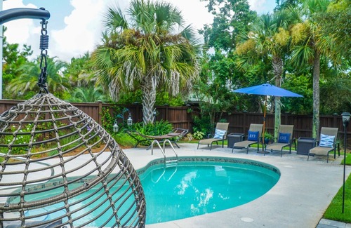 ABOUT THE HOME: They say every seashell has a story, we believe that every beach vacation should, too! A stunning beach bungalow that will have you swept into relaxation mode from the moment you step inside. From the cozy porch, cool tile floors and tasteful beachy pallet this open concept home provides plenty of space for gathering indoors or be wowed by the backyard paradise with a private swimming pool, grill, seating, and outdoor shower. When you're not taking laps around the pool or lounging on one of the two balconies, retreat to one of the four bedrooms. Call now and start SHELLabrating your upcoming beach trip!