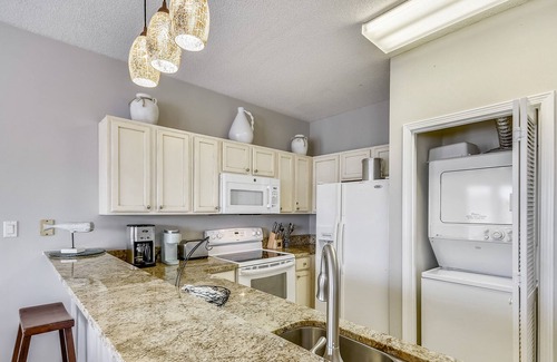 This spacious one bedroom, one bath Beachwalk Condo at Sandpiper Cove comfortable accommodates six people. Pet Friendly with pet fee. Partial beach view from the second story balcony. Beautifully decorated with in unit amenities such as washer, dryer, Wireless internet access, and cable TV with VHS and DVD in living room and bedroom. The beachwalk area of Sandpiper Cove is located at the front of the complex which allows you to walk to the beach in just a few short minutes. Beachwalk units are close to the largest pool, hot tub area, and putting greens at Sandpiper Cove. Sandpiper Cove, a 43 acre resort, has 1100 feet of sugar white beaches that rest against the Gulf of Mexico. Amenities include a 9 hole par 3 golf course, tennis, shuffle board, horse shoes, boat docks, 3 hot tubs, 5 pools, a restaurant, and BBQ grills scattered throughout the complex for your convenience. Boat docks can be rented for an additional fee. Comes with FREE beach service during season (two beach chairs and one umbrella).
