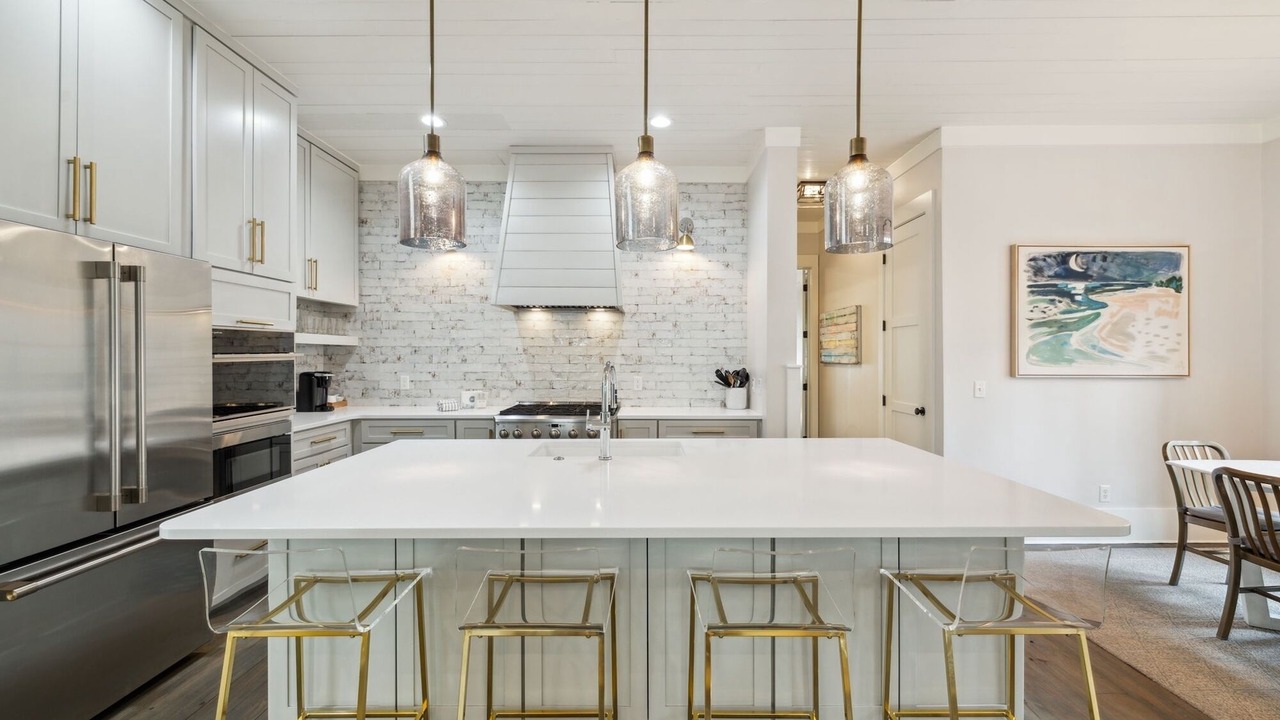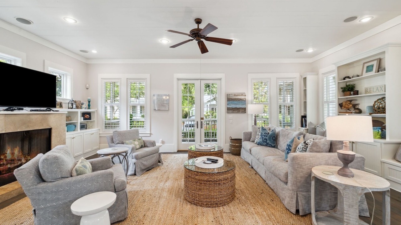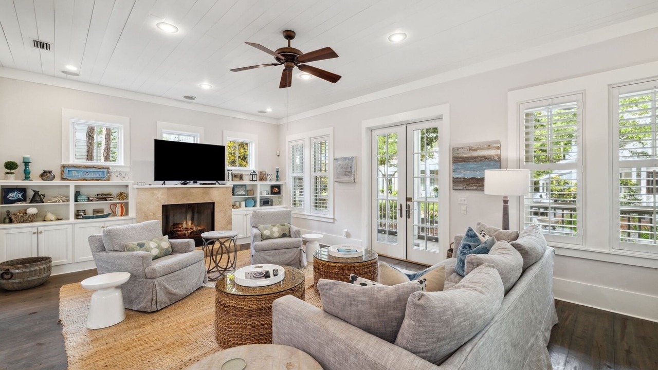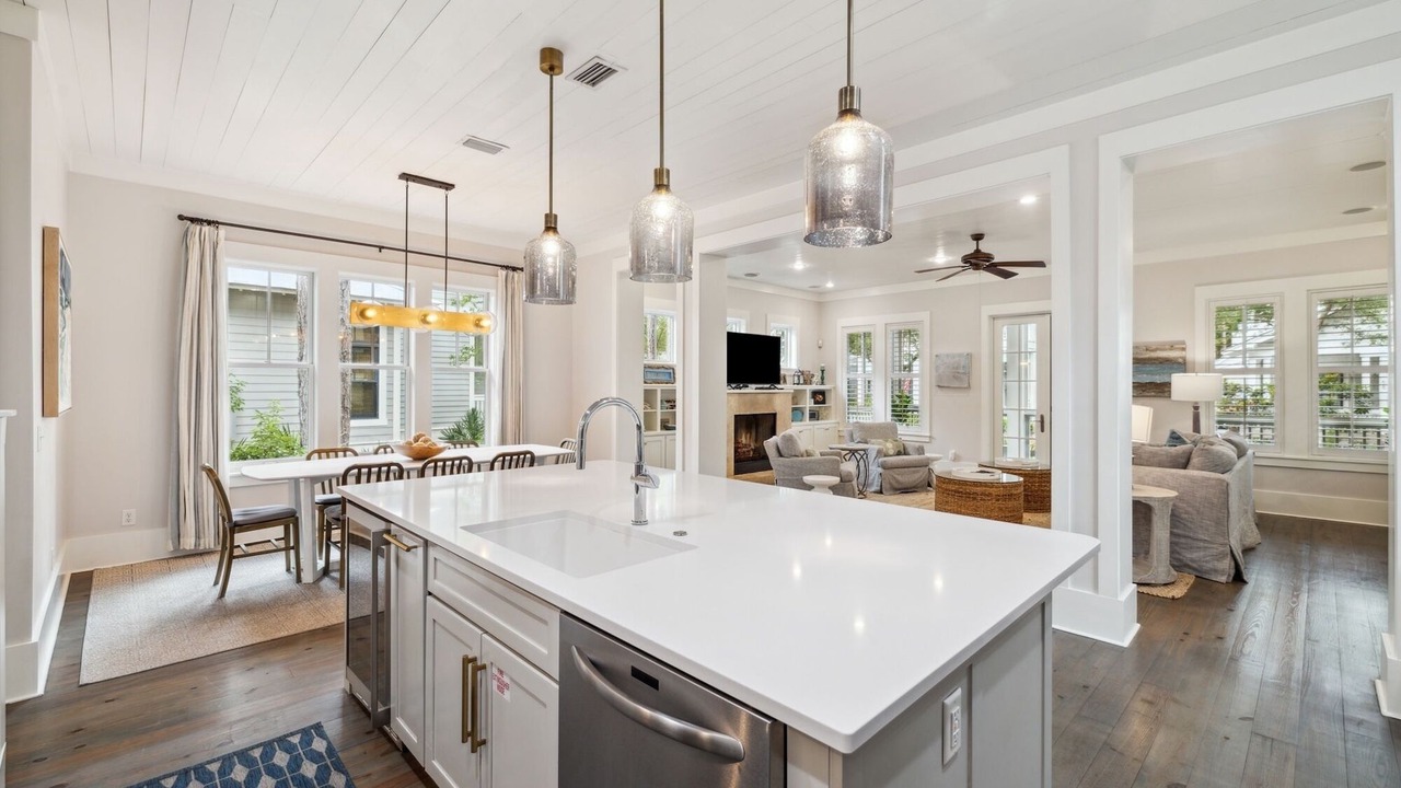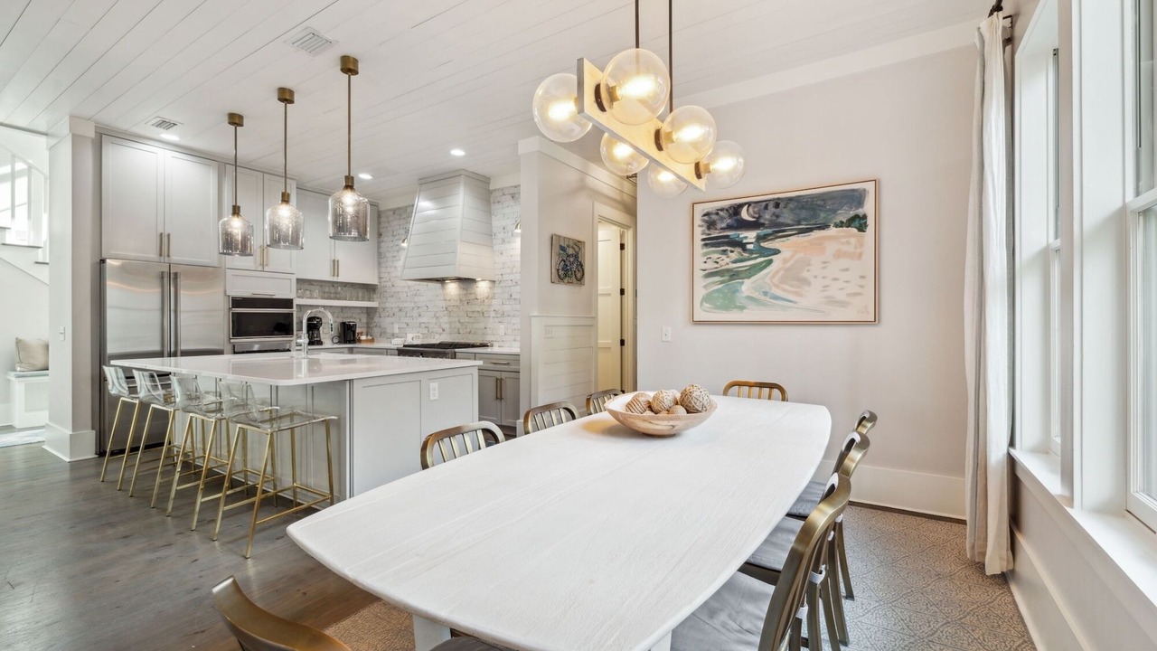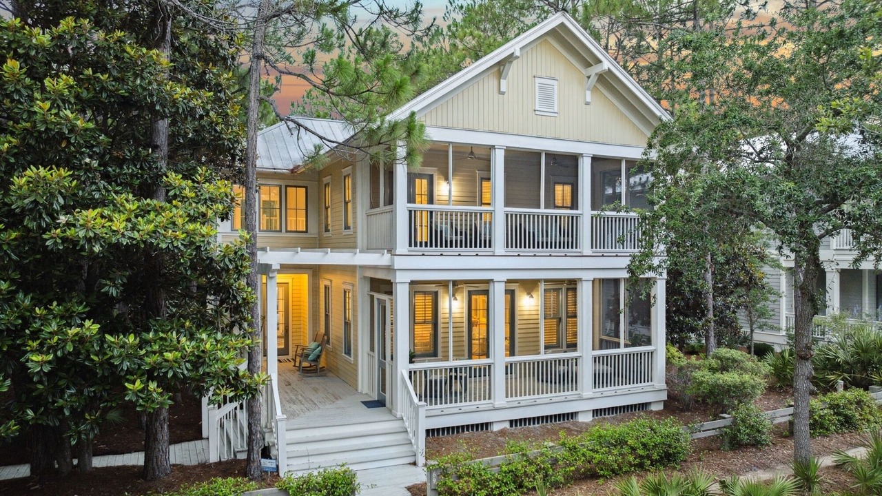 DETAILS: "Sunshine and Saltwater" is a luxury vacation rental ideally situated in WaterColor's Forest District. Featuring four bedrooms, three and a half bathrooms, two living areas and impeccably chic accommodations for up to ten guests, this beach abode offers the perfect spot to bring the whole family. On the first floor your will find the spacious living room, dining area overlooking the surrounding forestry and fully equipped kitchen which flow seamlessly from one another making entertaining on nights in a breeze! The primary bedroom rests on the first floor and is completed by a private bathroom with a superb soaking tub and walk in shower. As you make your way upstairs you are greeted with the bonus living area that leads out to a sprawling screened porch overlooking Pine Needle Way. The second floor also offers an additional king bedroom suite and two guest bedrooms which share a jack and jill bathroom. The home's convenient location offers swift access to Publix for your grocery needs and Pizza by the Sea. When you're ready to get out and about, explore WaterColor and Scenic 30A on the bikes provided or head over to neighboring Seagrove and Seaside for superb shopping and dining options. Check availability and book today!