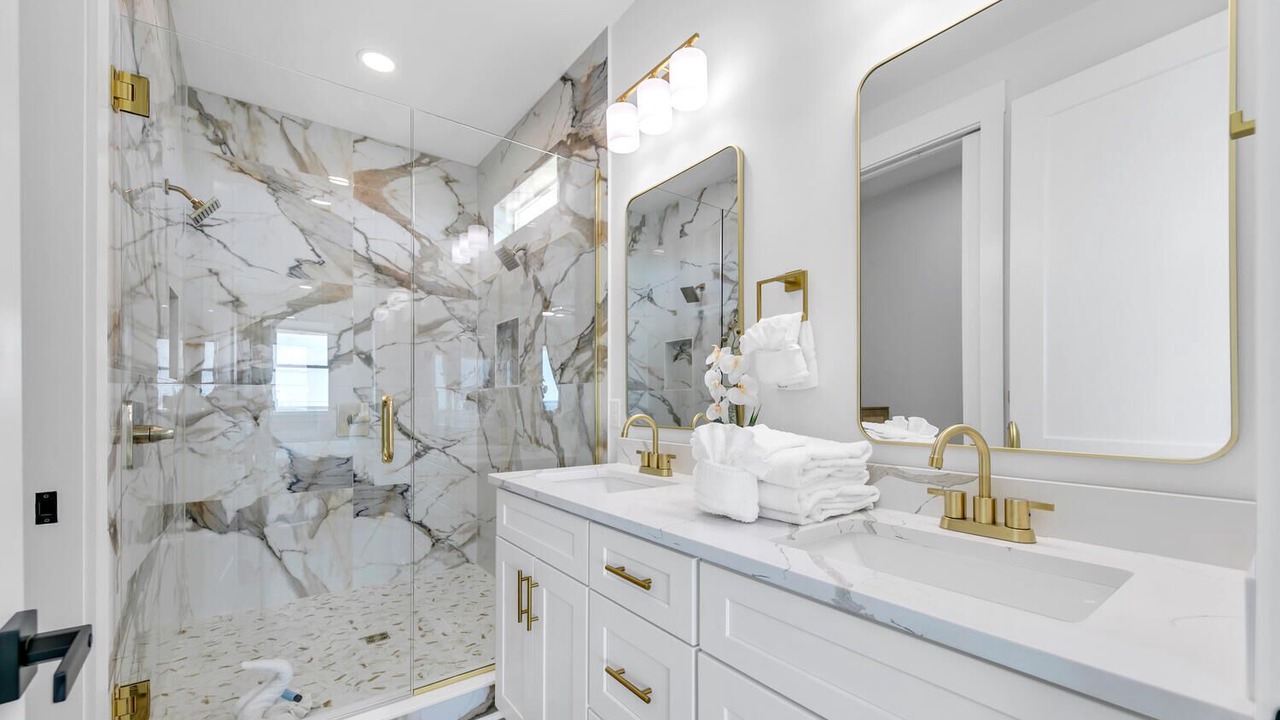 Welcome to the beautifully designed Golden Seashell East! You are going to absolutely love it here! This incredible brand new 3-story gulf view home is just a short stroll across the street from the beach and a private pool! Convenient and Beautiful! This property is absolutely stunning. With 6 bedrooms and 5 1/2 baths, there's plenty of room for everyone to spread out or come together. This home provides a spacious open kitchen, dining, and living area - it is the perfect layout for an entire family or for a retreat.