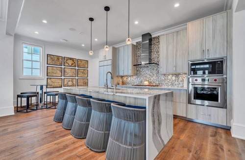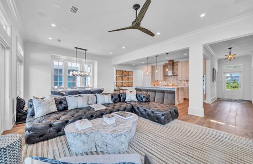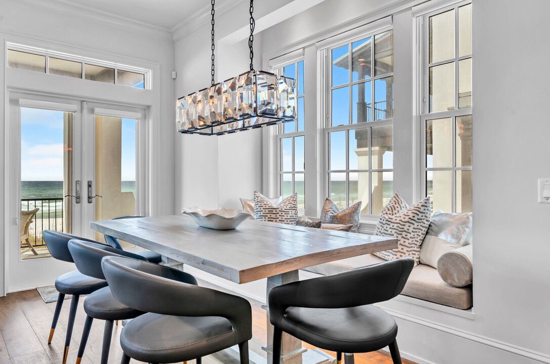 This stunning gulf front home, including detached carriage house, awaits countless cherished memories made by your family and friends. On site vendors will rent you golf carts, bikes, additional beach chairs. Captivating views of the gulf from the kitchen will prompt dining in where there is ample space for your guests. The kitchen features top-of-the-line appliances and seating for 14 together.