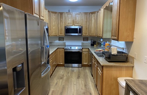 The kitchen is well equipped with all new major appliances . The kitchen also has 2 coffee makers including a Keurig. .