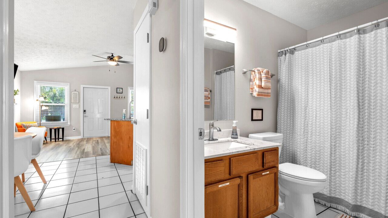 Stay just two blocks from the sugar-white sands of Panama City Beach in this cozy, modern home — unmatched location in a quiet residential neighborhood near Rick Seltzer Park.