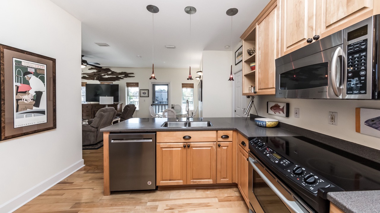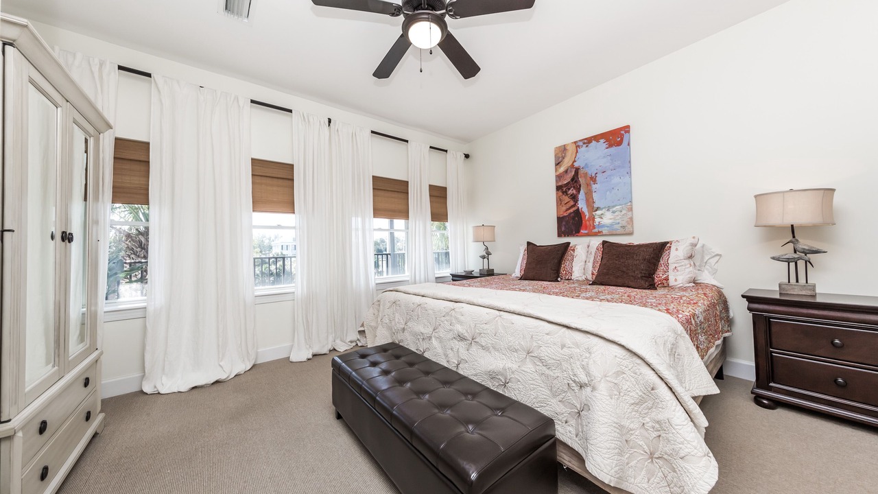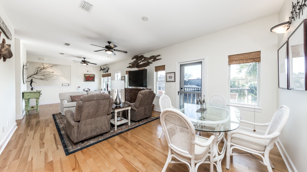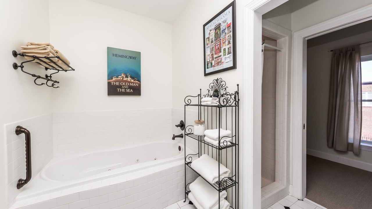 This large open plan 2nd floor condo can sleep 4 comfortably in King Beds plus 2 more in a twin trundle bed and it's handily located right downtown Apalachicola. The Osprey has everything you might need for your weekend, week long or month long stay. The entire front window wall lets in the afternoon & sunset light. The large Master Suite features a soaking tub, step in shower, dual sinks and a large walk in closet. The 2nd bedroom is on the opposite side of the condo for privacy with the 2nd bath just outside the door. Additional amenities: Flat Screen TV, Wireless Internet, Offstreet assigned parking, Private Elevator, Full Kitchen, Washer & Dryer, all linens provided. Large covered Veranda overlooking a city pocket park.