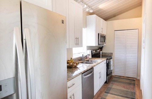 This bright cottage on the Pelico Palms property is a perfect, private hideaway - close to Key West yet boasting total peace and privacy! Enjoy relaxing in a cottage that has everything you and your family could need for a care-free escapade. The spacious interior of this family-friendly space has a fully equipped kitchen, a small living room with a pull-out sofa, and 3 private bedrooms, each with its own bath. Tons of room to explore the beautiful, tropical outdoors, and close to so many amazing adventures including the Jumping Bridge, the "Road To Nowhere" path, and even a small, private beach just a five minute walk away. Privacy and wildlife abound……not to mention the SUNSETS……..