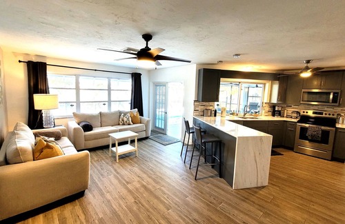 - Spacious open concept with two living rooms, and dining area with work from home office area, modern kitchen fully equipped located central between the two living rooms.