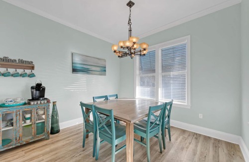 - Next to the kitchen is our farmhouse style dining table that can seat 8. It will be the perfect spot for eating meals or playing games! (Several games are offered in the house!)