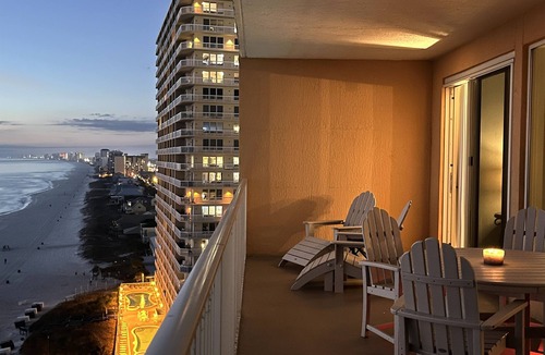 Furnished with beautiful furniture and comfortable king size memory foam mattresses in both bedrooms. We updated the master bathroom with a freestanding tub, tiled shower and quartz countertops. Luxury Vinyl Plank flooring has been installed throughout the condo, and all the cabinets have been updated with shaker doors (completed Feb 2020). New Revolution fabric sofa and swivel chair (Feb 2023). You will love the view from the huge 12th floor balcony!. Enjoy this spacious 1370 sq. foot 2 BR/ 2 BA NON-SMOKING unit. It will accommodate up to 4 Adults (MAX)and 2 children very comfortably (Maximum occupancy of 6 total). If more than 6 people (4 adults) try to occupy the condo you will be required to leave with no refunds. Parking garage attached -- no streets to cross. 7 night rentals only Sat- Sat. with a maximum stay of one week. We do not rent monthly. Absolutely NO SMOKING inside or on balcony and NO PETS in our unit. If either of these rules are violated you will be evicted with no refunds and lose your damage deposit.